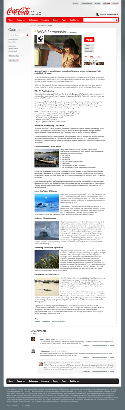 Employees would have a chance to add, vote for-, become a buddy of- of share the cause(s) of their choice. Each cause would have a page outlining what they do and who they try to reach. The individual page would be maintained by employees.